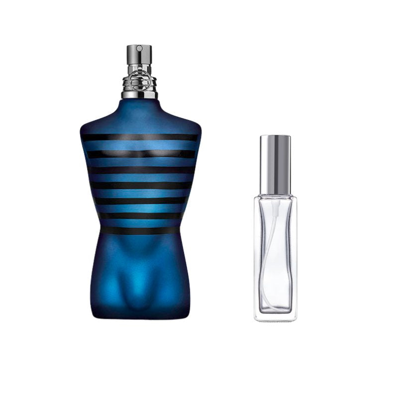 Jean Paul Gaultier Ultra Male Sample Experience the daring intensity of Jean Paul Gaultier Ultra Male in a premium sample vial, perfect for testing this bold and seductive fragrance on the go. Opening with a vibrant burst of juicy pear, black lavender, and refreshing mint, Ultra Male immediately makes a striking impression. The heart introduces spicy cinnamon and clary sage, adding warmth and intrigue, while the base unfolds with rich notes of black vanilla, amber, and woods, leaving a deep and irresistible trail. Designed for the confident man who enjoys making a statement, this sample offers the perfect way to explore the magnetic power of Ultra Male without committing to a full bottle.