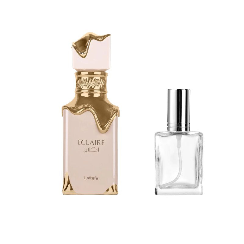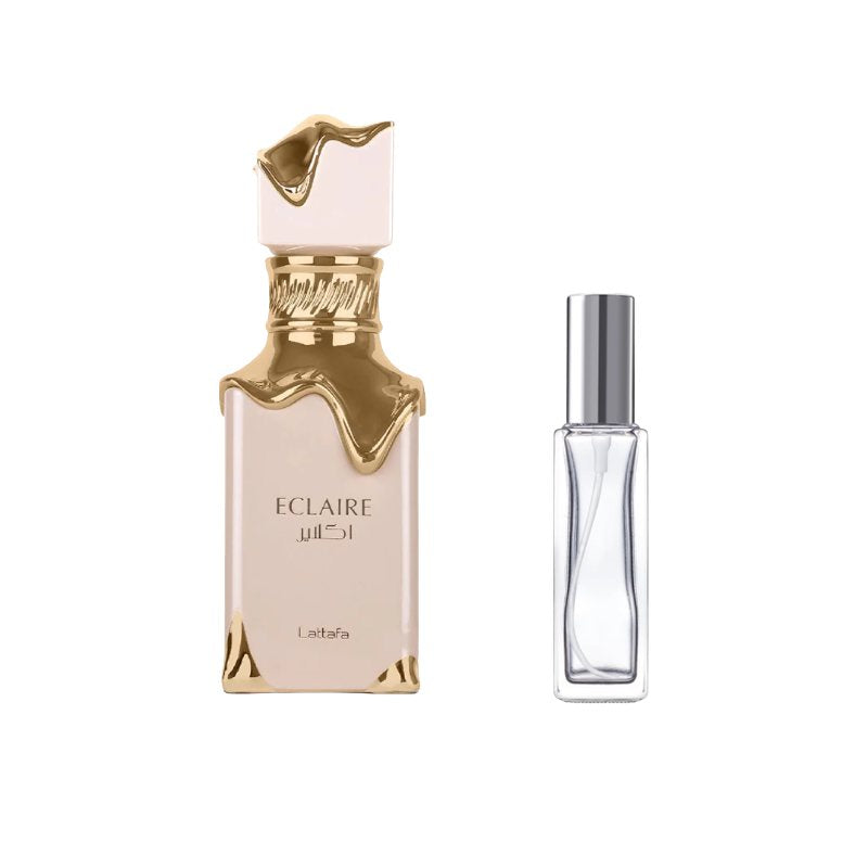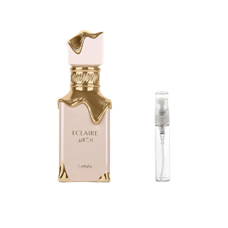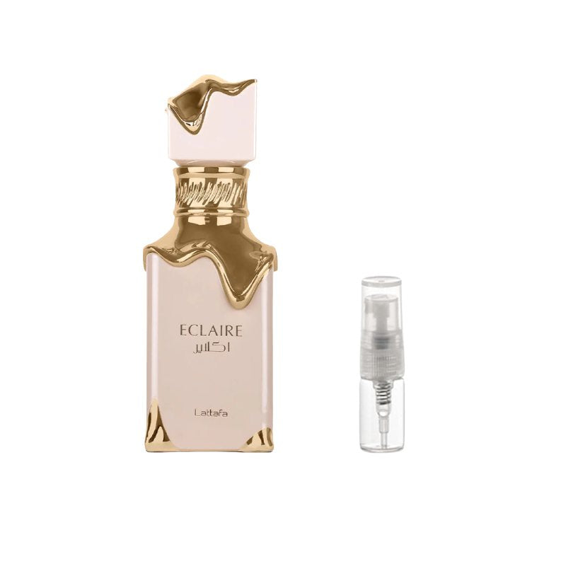 Lattafa Eclaire Sample Experience the decadent sweetness of Lattafa Eclaire with this premium sample vial, perfect for exploring its irresistible gourmand charm. The fragrance opens with a luscious blend of whipped cream and sugary notes that immediately feel warm and delicious. At its heart, soft florals intertwine with caramel and delicate vanilla, adding a creamy richness that is both comforting and addictive. The base lingers with smooth musk and subtle woods, leaving behind a sweet, cozy trail that feels like a dessert in a bottle. Ideal for everyday wear or when you want to indulge in something playful and delicious, this sample lets you enjoy the delightful personality of Eclaire without committing to a full bottle.