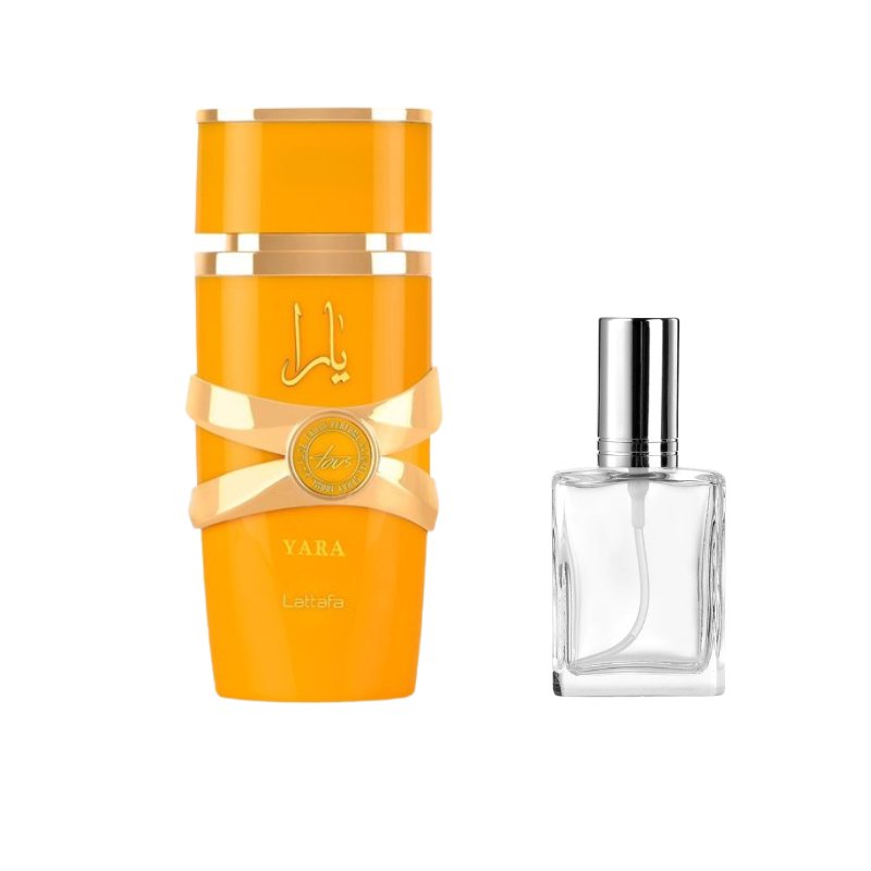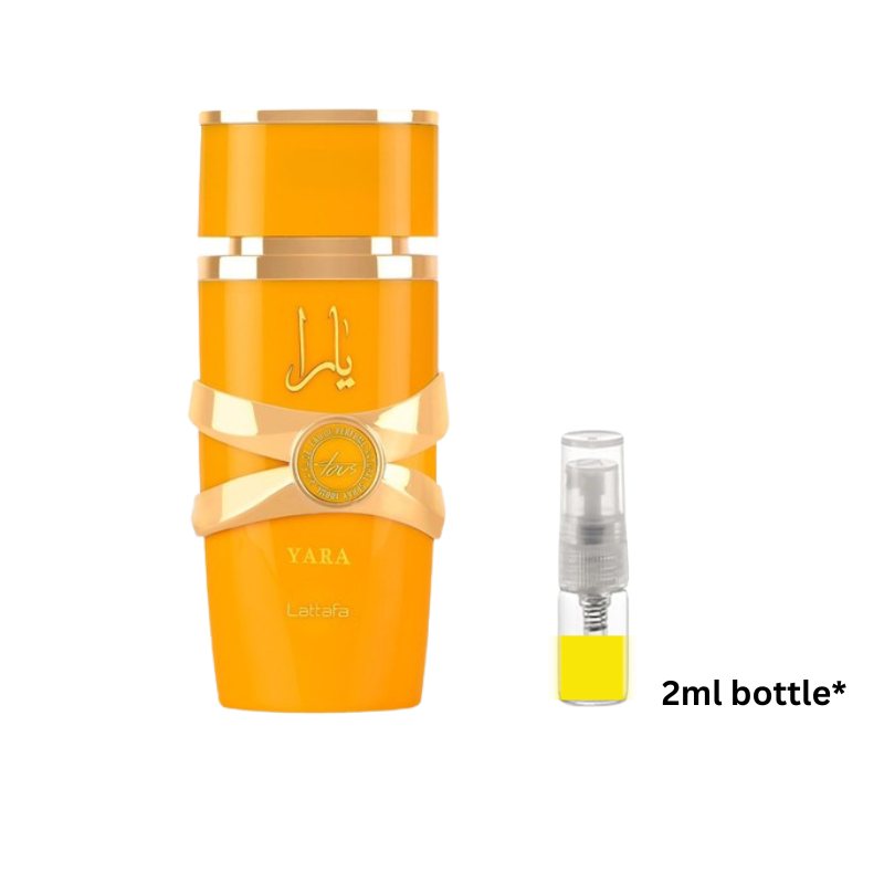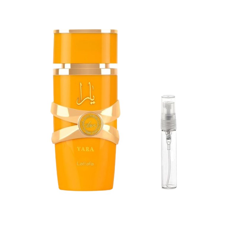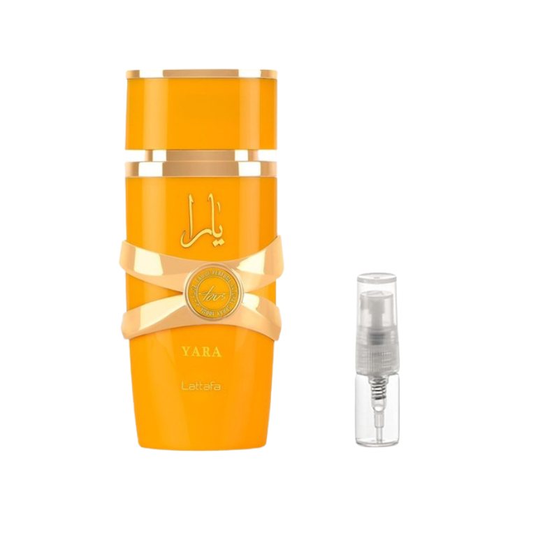 Lattafa Yara Tous Sample Discover the radiant charm of Lattafa Yara Tous with this premium sample vial, perfect for testing its bright and playful personality. The fragrance opens with a lively blend of tropical fruits and citrus notes, instantly uplifting the senses with freshness and energy. At its heart, delicate florals intertwine with creamy, gourmand undertones, adding depth and a touch of sweetness. The base settles into soft musk and smooth vanilla, leaving a warm, comforting trail that feels effortlessly elegant. Ideal for daily wear or when you want a cheerful and feminine signature, this sample lets you enjoy the delightful character of Yara Tous without committing to a full bottle.