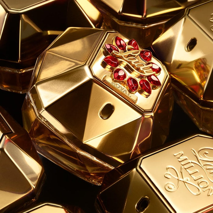 Lady Million Royal – 80 ml Eau de Parfum  Unleash your inner queen with Lady Million Royal, a radiant fragrance from Paco Rabanne that combines bold fruity freshness with glamorous floral elegance. The fragrance opens with juicy pomegranate, zesty mandarin, and crisp green accords, instantly capturing attention with a sparkling sweetness. At its heart, luxurious white florals—orange blossom, jasmine, and tuberose—bloom in full glory, adding richness and sophistication. Finally, a creamy base of cashmeran, patchouli, and musk wraps the scent in a warm, sensual trail that lingers beautifully. Perfect for evenings, festive occasions, or anytime you want to shine with confidence, this 80 ml bottle delivers a statement fragrance filled with feminine power and elegance.