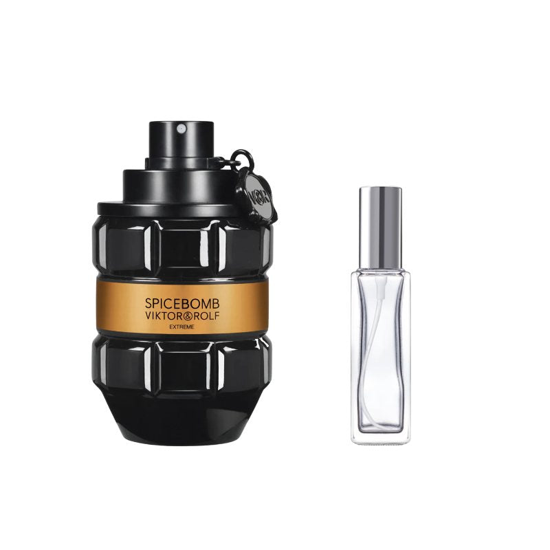 Viktor&Rolf Spicebomb Extreme Sample Discover the explosive intensity of Viktor&Rolf Spicebomb Extreme in a premium sample vial, perfect for exploring this bold and addictive fragrance. It opens with a fiery burst of black pepper and caraway, igniting the senses with instant heat and spice. At its core, a warm blend of cinnamon, cumin, and saffron creates a rich, aromatic heart that is both daring and irresistible. The dry-down reveals a smooth, smoky base of tobacco, vanilla, and amber, wrapping the scent in seductive depth and lingering warmth. Perfect for evening wear or cooler nights, this convenient sample lets you experience the unforgettable power of Spicebomb Extreme without the commitment of a full bottle.